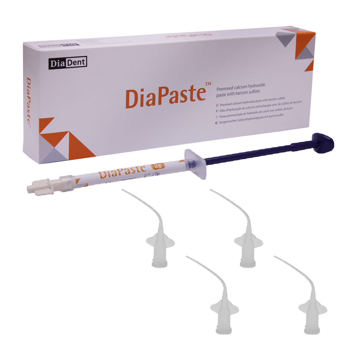 کلسیم هیدروکساید سرنگی برند دیادنت در بسته های حاوی یک عدد سرنگ 2 گرمی، 4 عدد تیپ یکبارمصرف و یک عدد سیلیکون کپ عرضه می گردد.