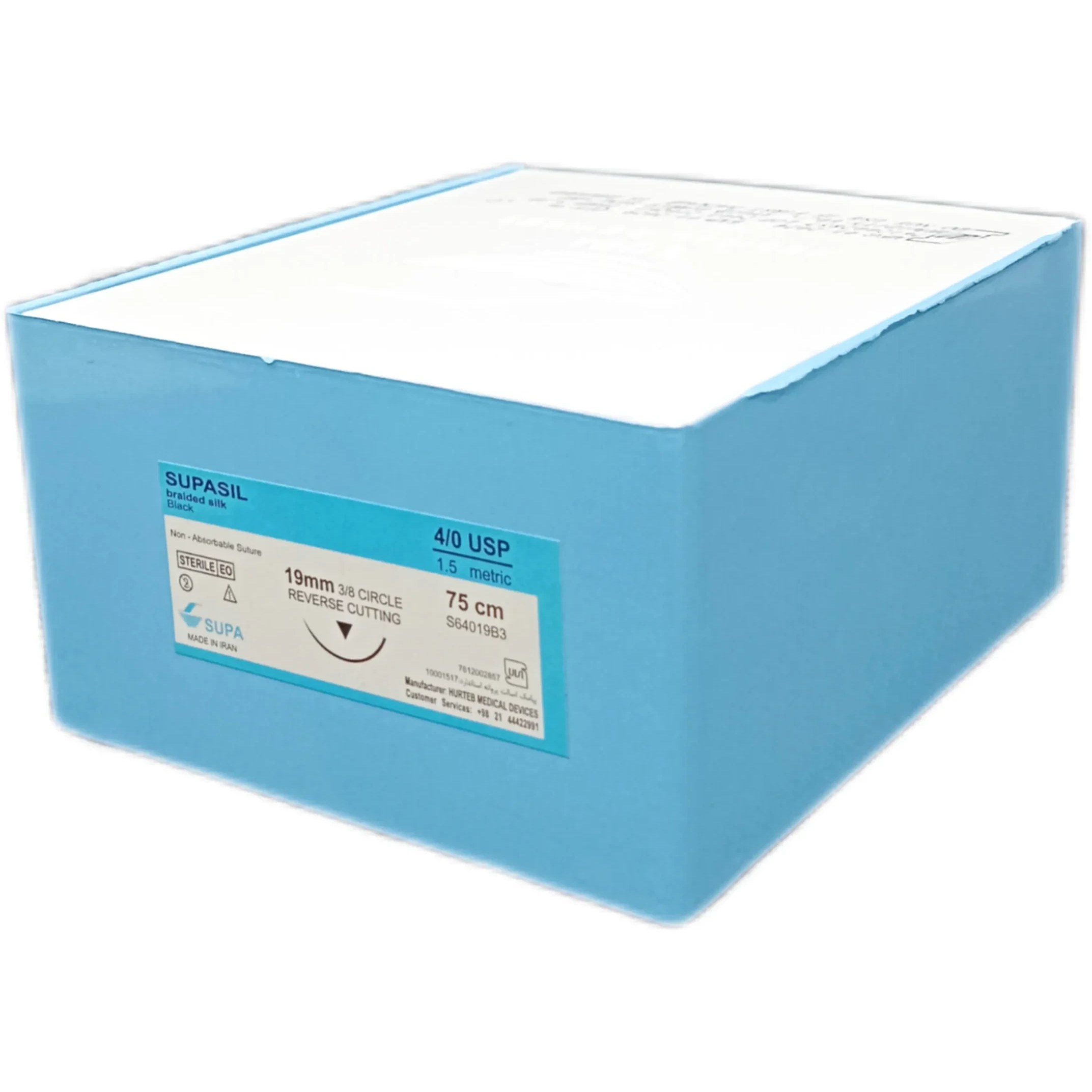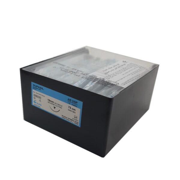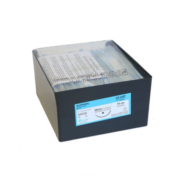 نخ بخیه سیلک سوپا با طول 75 سانتی‌متر و سایزبندی19-3.0، 26-3.0، 19-4.0 و 26-4.0 در بسته‌بندی 36 عددی عرضه می‌گردد.
