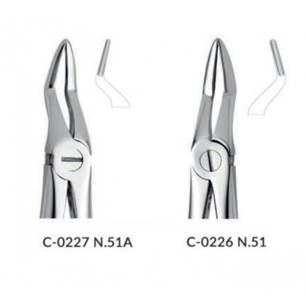 فورسپس ریشه‌کش فک بالا برند ND در دو مدل N.51 و N.51A و با جنس استیل ضد زنگ عرضه می گردد.