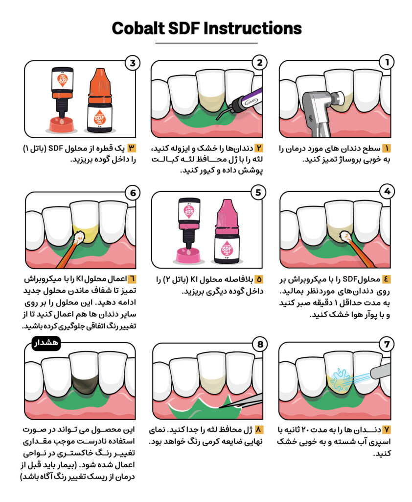 SDF کبالت ماده ای حاوی نقره و فلوراید است که به عنوان عامل ضد حساسیت در پوسیدگی های عاجی استفاده می شود.