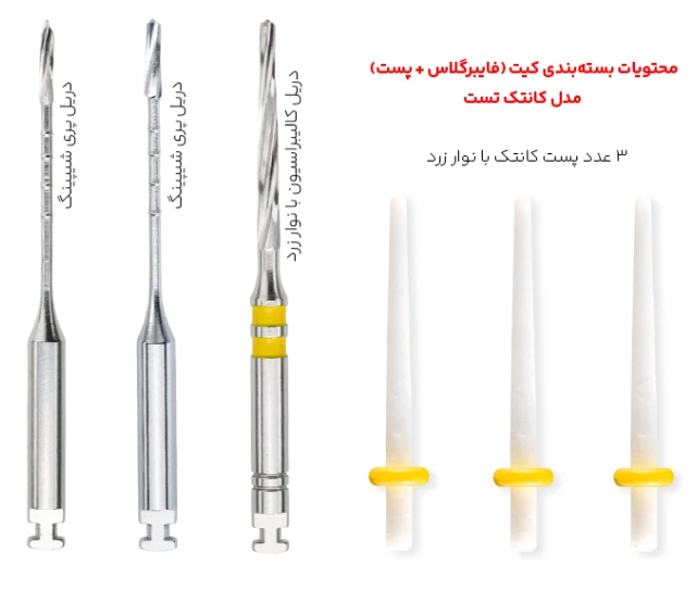 • محتویات بسته : 3 عدد فایبر پست سایز 2 + 2عدد دریل پری شیپینگ +1 دریل کالیراسیون