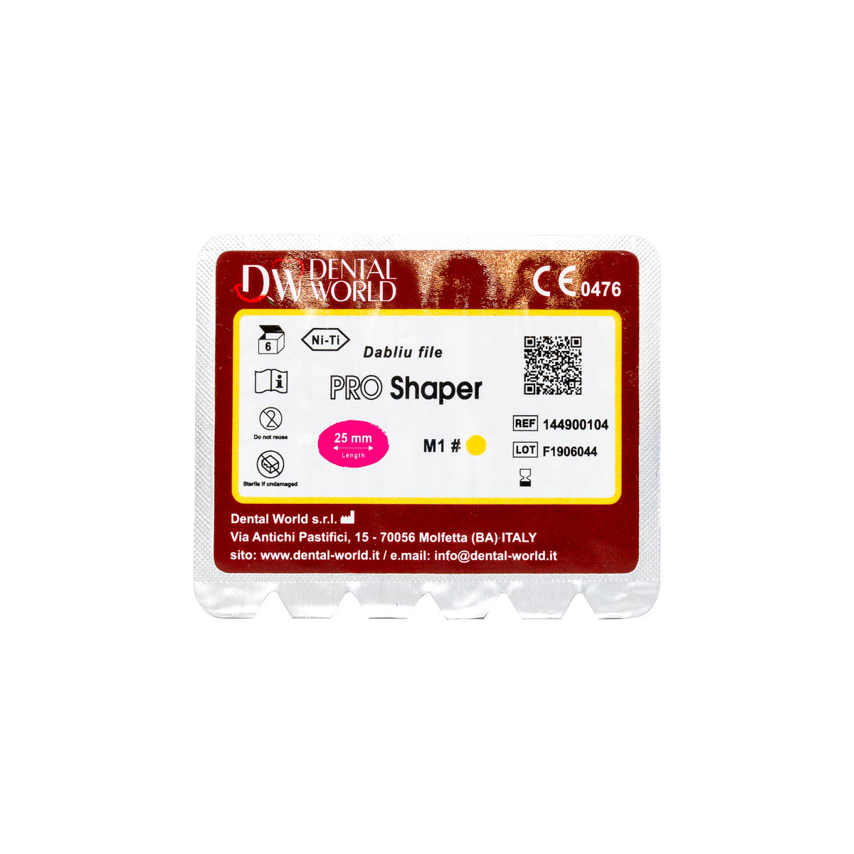 فایل روتاری پروتیپر برند دنتال ورلد در سایزهای D1،D2 ،M1 ،M2 ،M3 و بسته های 6 عددی عرضه می گردد.