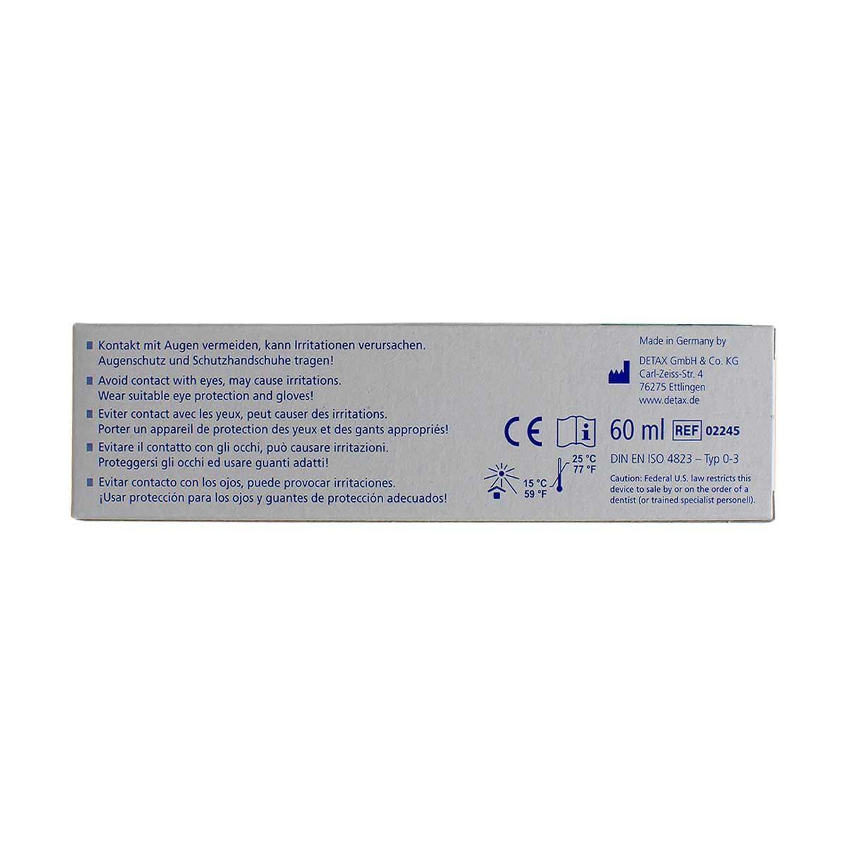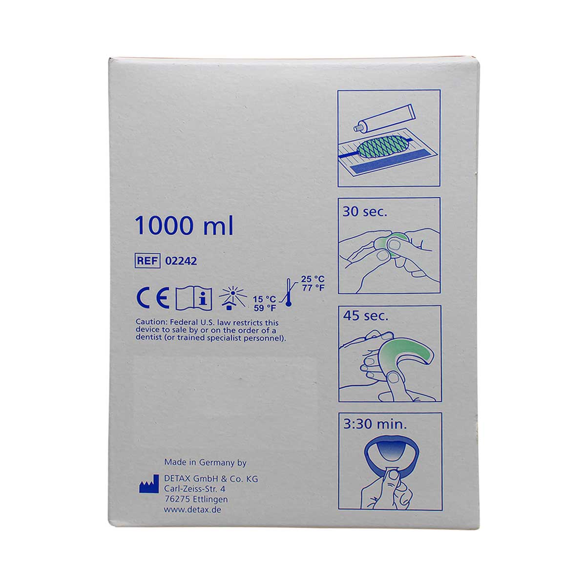 ست قالبگیری برند Detax در بسته های حاوی یک عدد پوتی 1000 میلی لیتری و یک عدد قاشق به همراه یک عدد لایت 150 میلی لیتری و یک عدد اکتیواتور 60 میلی لیتری عرضه می گردد.