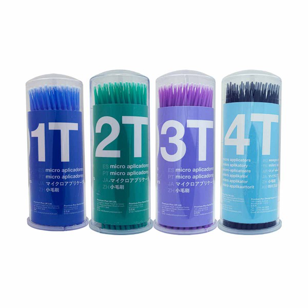 میکرو براش پرمیوم پلاس با رنگ‌بندی مشکی(XS)، بنفش(S)، سبز(M) و آبی (L) در بسته‌بندی 100 عددی عرضه می‌گردد.