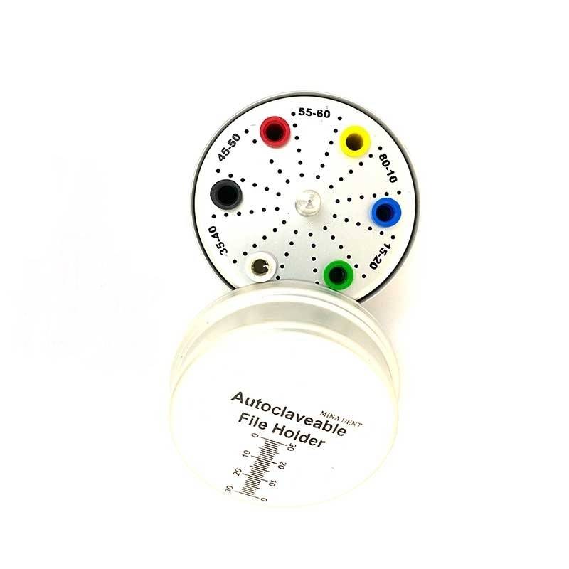 این محصول با کیفیت فوقالعاده و قابل اتوکلاو میباشد. دارای رنگ نقرهای میباشد. جای فایل یا فرز، جنس و اشکال مختلفی دارد. جای فایل گرد قابل اتوکلاو ، یکی از پرکاربردترین انواع جای فایل یا فرز به شمار میرود. علاوه بر این، این نوع جای فایل ، از مقرون به صرفهترین جای فایلهاست. جای فایل گرد قابل اتوکلاو ، دارای 72 جای فایل است که میتوان فایلها را در رنگهای مختلف درون هر یک از فضاهای جداگانه قرار داد و برای هر بیمار از یک فایل تمیز استفاده کرد.