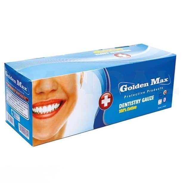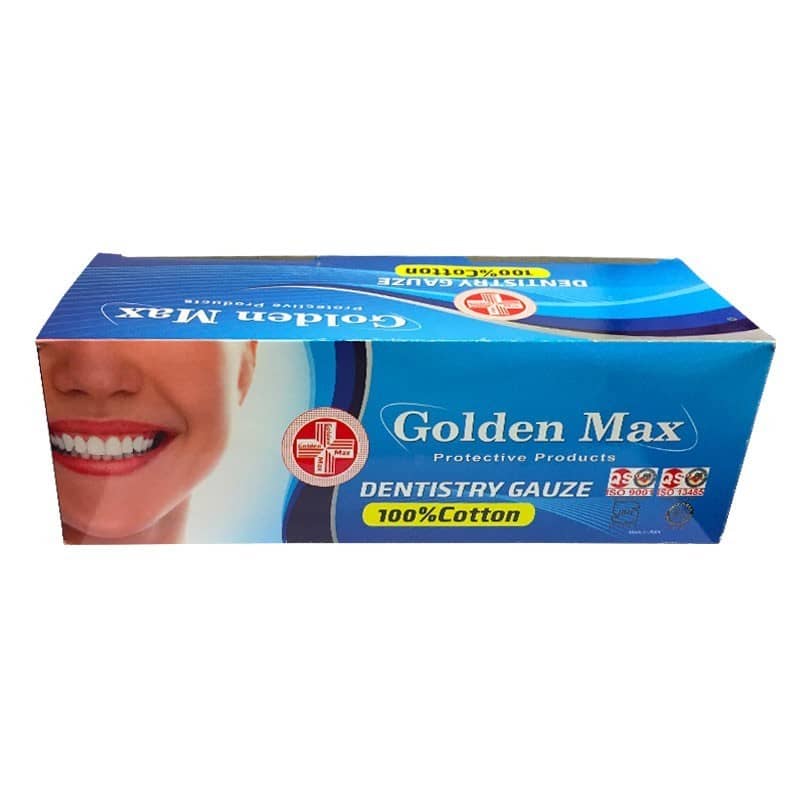 گاز دندانپزشکی برند Golden Max از جنس 100 درصد پنبه تهیه می شود و به صورت بسته 400 عددی به فروش می رسد. کیسه های بسته بندی شده این محصول در سینی های باز قرار می گیرند. برخی از ویژگی های مهم فیزیکی این محصول عبارتند از: