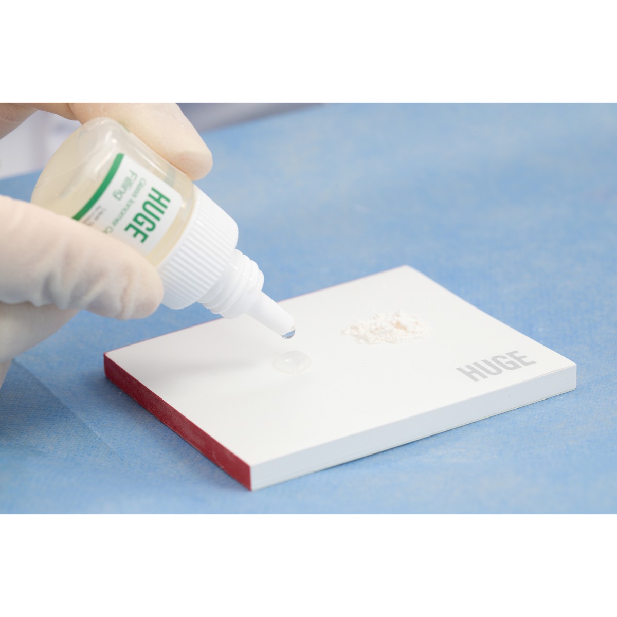 گلاس آینومر ترمیمی برند هیوج در بسته های 12 گرم مایع به همراه 15 گرم پودر عرضه می گردد.