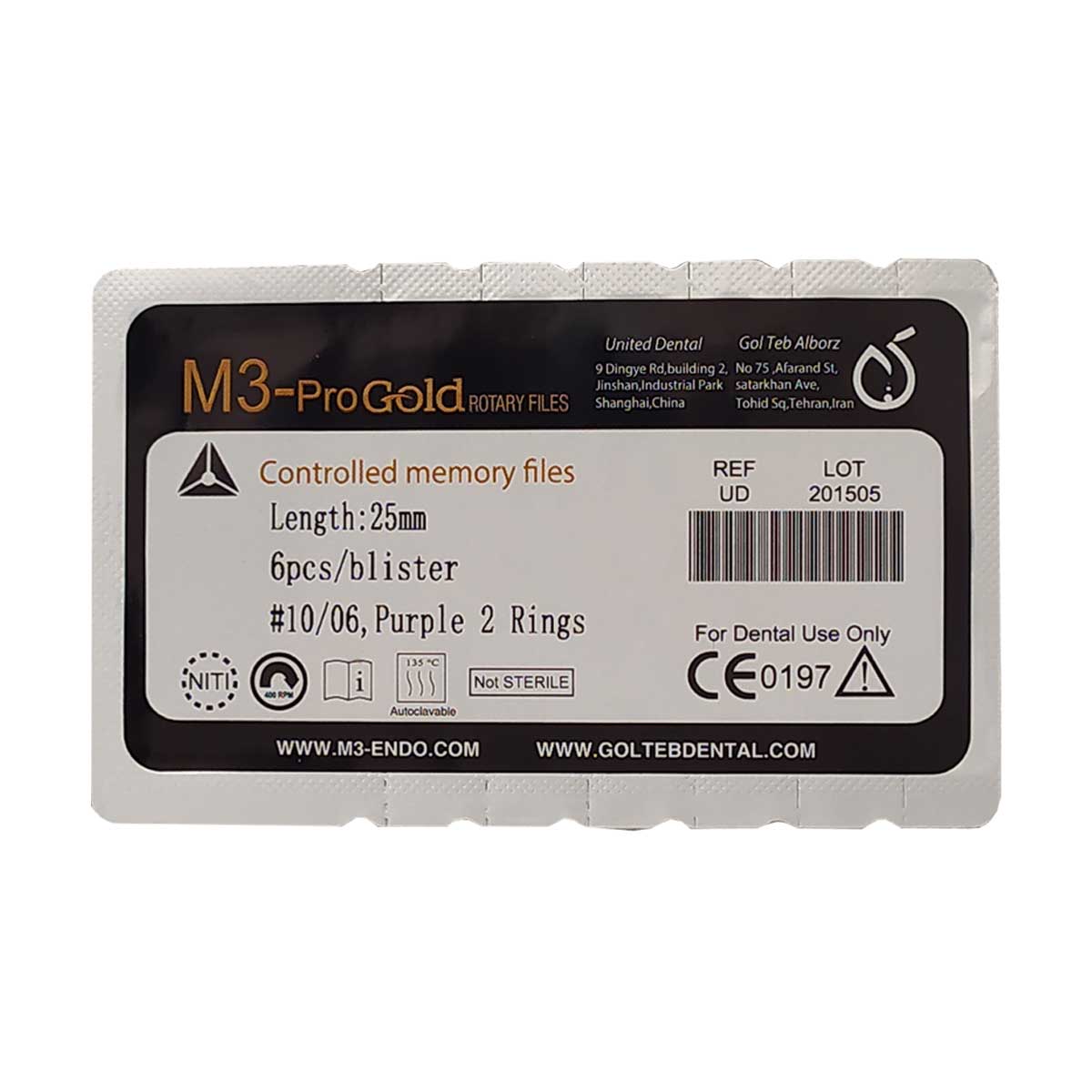 فایل روتاری 6٪ M3 Pro Gold Rotary File - فایل روتاری 6٪ شش عددی M3 - فایل روتاری 6٪ شش عددی برند M3 - تجهیزات دندانپزشکی خانه الماس
