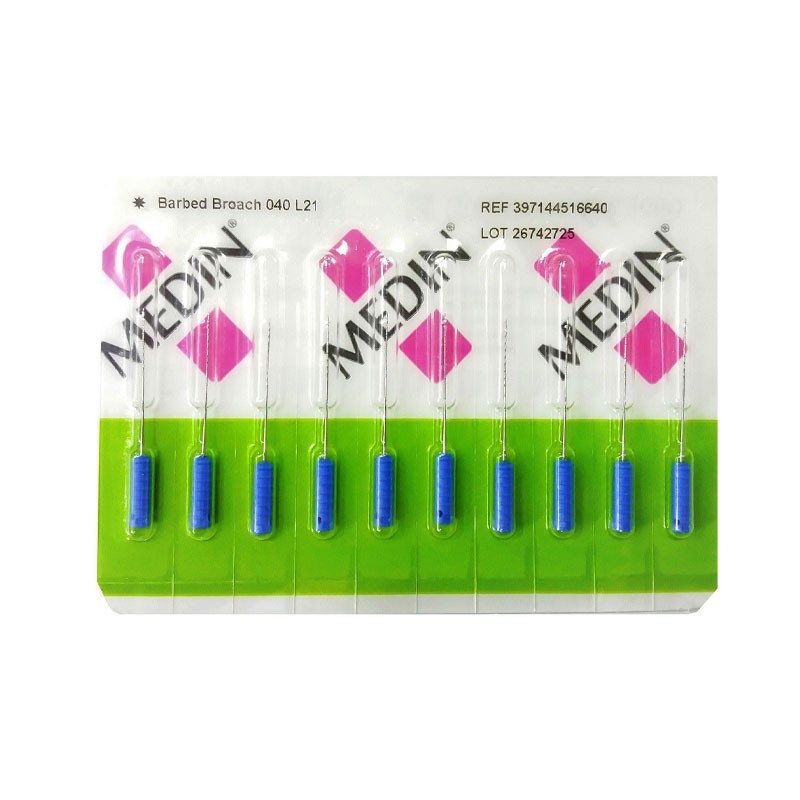 - فایل دستی باربروچ مدین Medin barbed broach برای تمیز کردن داخل کانال دندان بعد از عصب کشی استفاده می شود.