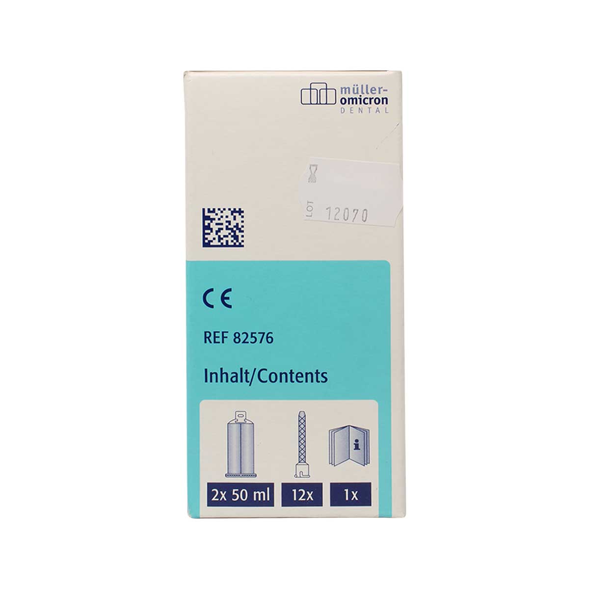 ماده ثبت بایت Muller با رنگ شفاف به صورت 2 عدد کارتریج 50 میلیلیتر به همراه 12 عدد سری عرضه میگردد.