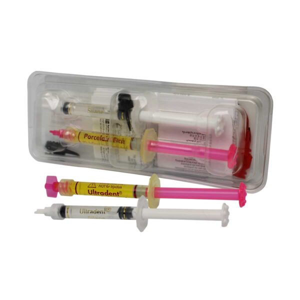 کیت پرسلن اچ Ultradent به صورت 1 عدد سرنگ اسید اچ و 1 عدد سرنگ سایلن عرضه میگردد.